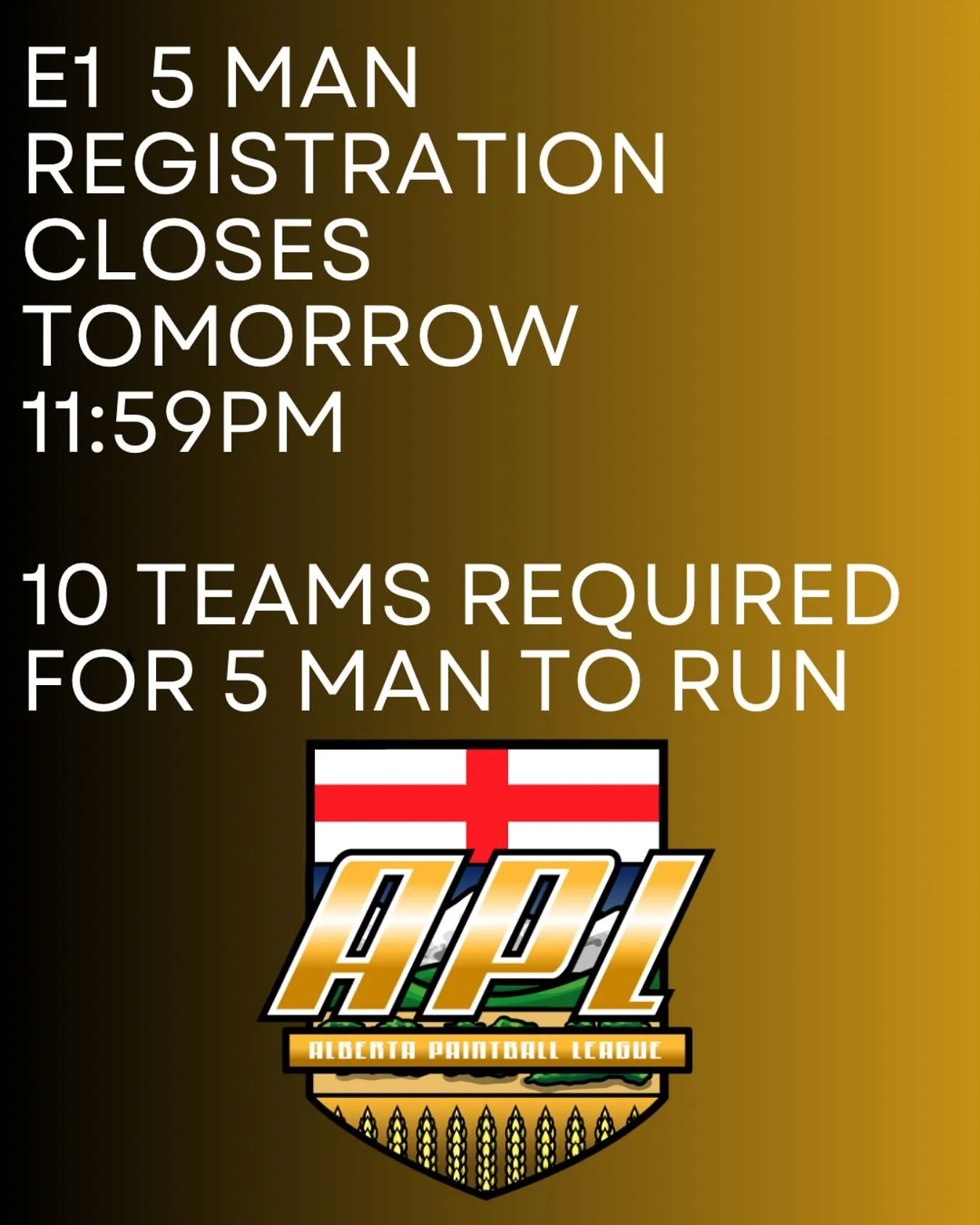 View fullsize E5 entry closes on Monday. Get your team signed up for the last event.